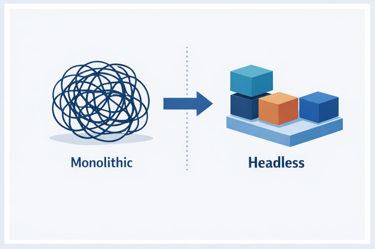 この一体型構造は、導入が比較的容易である一方、デザインのカスタマイズに大きな制約があったり、一部の機能を改修するだけでシステム全体に影響が及んだりするリスクがありました。